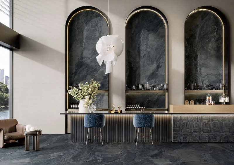 Экзотический мрамор в современных крупноформатных решениях Коллекция Mystery от Tagina с толщиной 6 мм и плитой 150×300 см. Новости