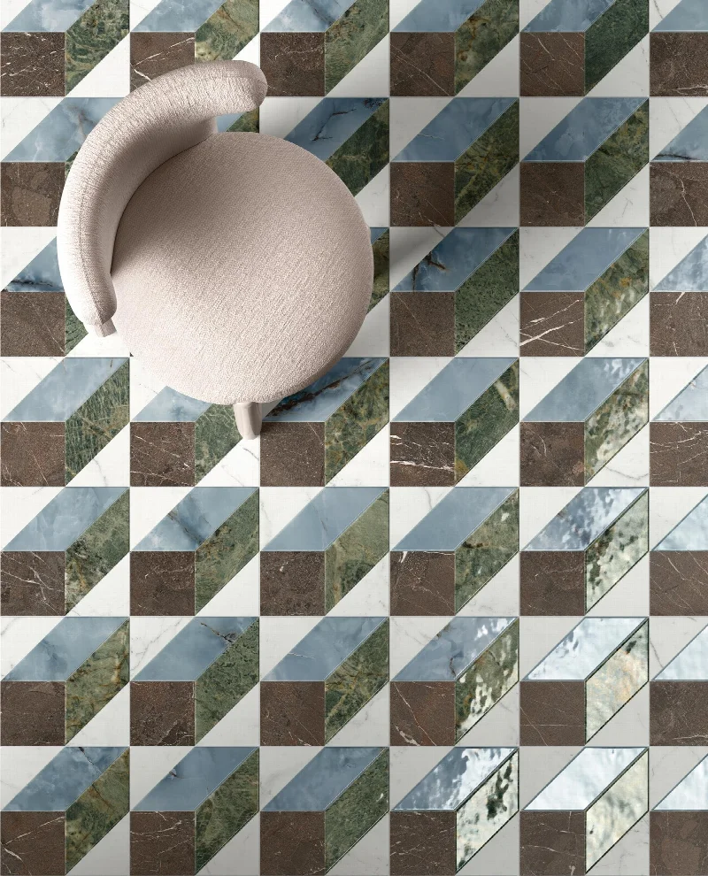 Движение в деталях Коллекция Flicker от компании DECORATORI BASSANESI представляет полнотелую керамогранитную мозаику с центральным углублением в каждом мозаичном элементе. Новинки