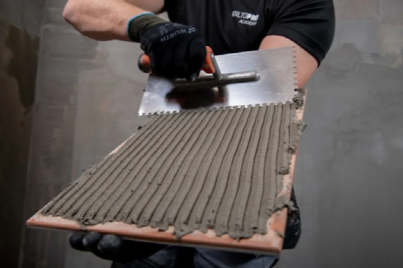 Качество плиточного клея зависит от правильности его приготовления. На упаковках всегда указывается порядок соединения компонентов. Несоблюдение пропорций, равно как и последовательности смешения, приводит к изменению практически всех параметров раствора, заявленных производителем. Существенное влияние на качество плиточных работ оказывает соблюдение правил нанесения клея. При выполнении работ снаружи помещений его рекомендуется накладывать как на основу, так и на тыльную сторону плитки при помощи зубчатого шпателя, размер зубьев которого зависит от формата, материала и массы облицовки. Внутри помещений мастера обычно наносят клей только на основание, также есть композиции, предназначенные только для нанесения клея на плитку. Не стоит нарушать и рекомендованную производителем минимальную и максимальную толщину нанесения клея.