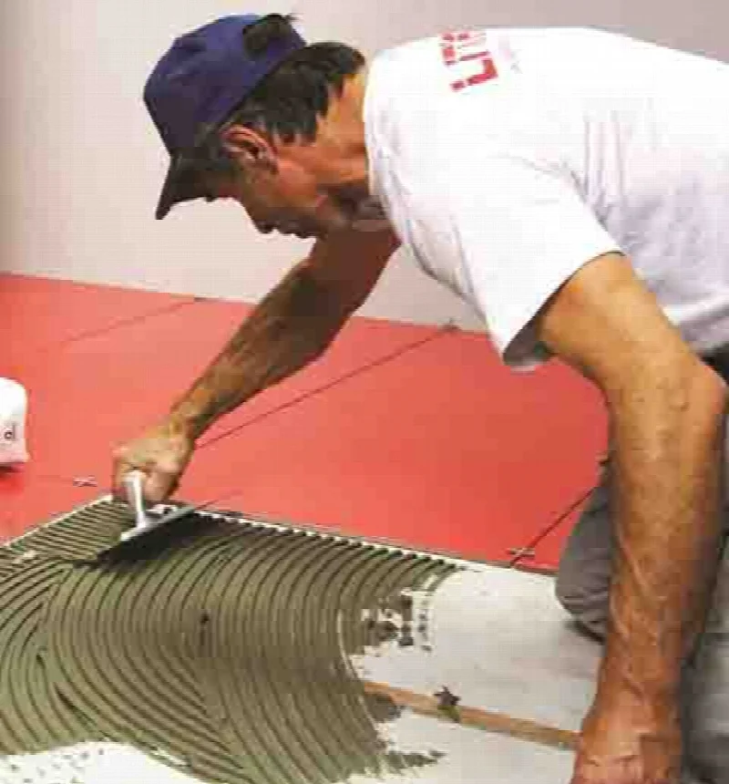 Распределение клеящего состава по поверхности пола (LITOKOL) Источник фото: Пресс-служба компании-производителя