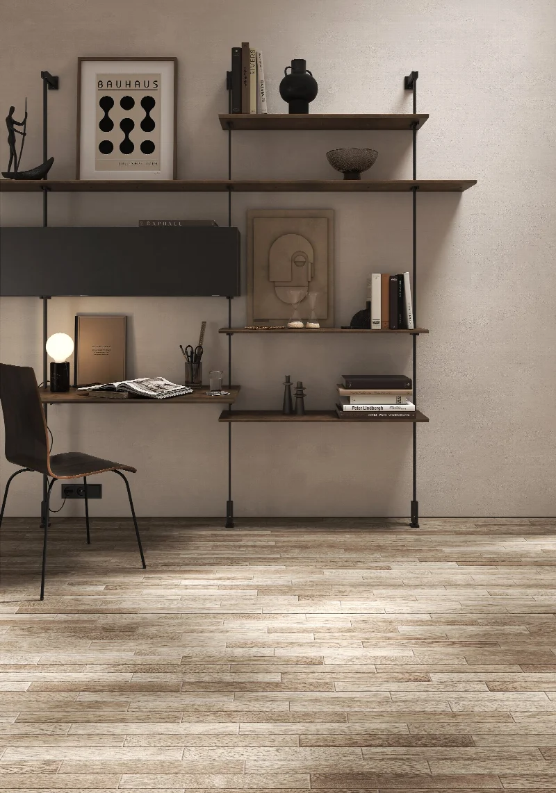 Коллекция включает шесть элегантных цветовых вариантов, каждый из которых подчеркивает природные нюансы материала. Поверхность детально проработана для передачи тактильных ощущений, приближенных к натуральной древесине, что создает целостное восприятие в интерьерах.