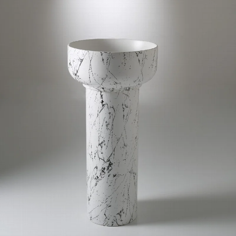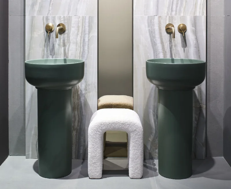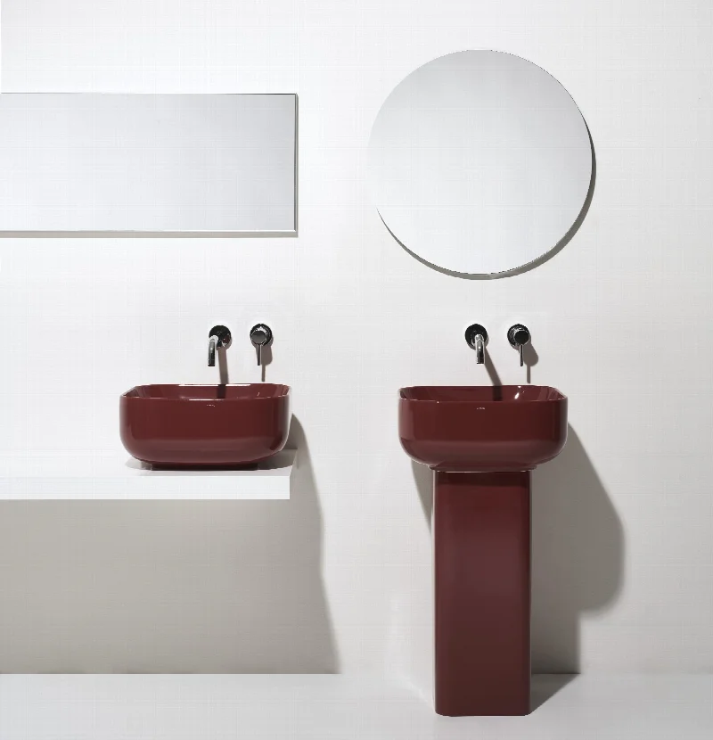 Модель доступна в двух геометрических версиях, каждая из которых поддерживается собственной колонной. Круглая раковина диаметром 45 см устанавливается на цилиндрическую опору, квадратная версия со стороной 45 см — на колонну с квадратным сечением. Высота обеих опор составляет 65 см.