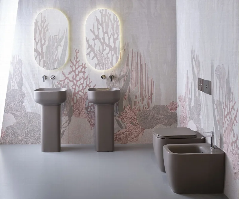Коллекция представлена в 19 цветовых решениях, включая матовые и глянцевые варианты отделки. Конструкция позволяет органично интегрировать сантехнические коммуникации, сохраняя чистоту визуального образа.