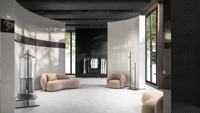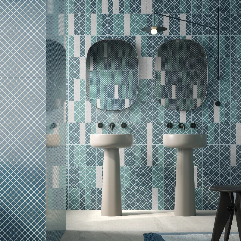Фирменный клетчатый узор, характерный для настенной плитки, стал ключевым мотивом новой коллекции. Этот элемент не только добавляет свежесть выбранным форматам, но и служит эффектным акцентом, способным преобразить пространство.