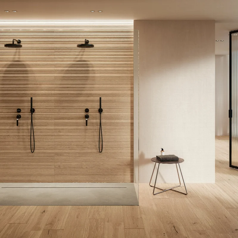 Такое внимание к деталям позволило добиться чрезвычайно реалистичных поверхностей, передающих особенности исходного материала. Коллекция естественным образом воссоздает типичную структуру древесины, предлагая эстетику натурального дерева с практичностью керамики.