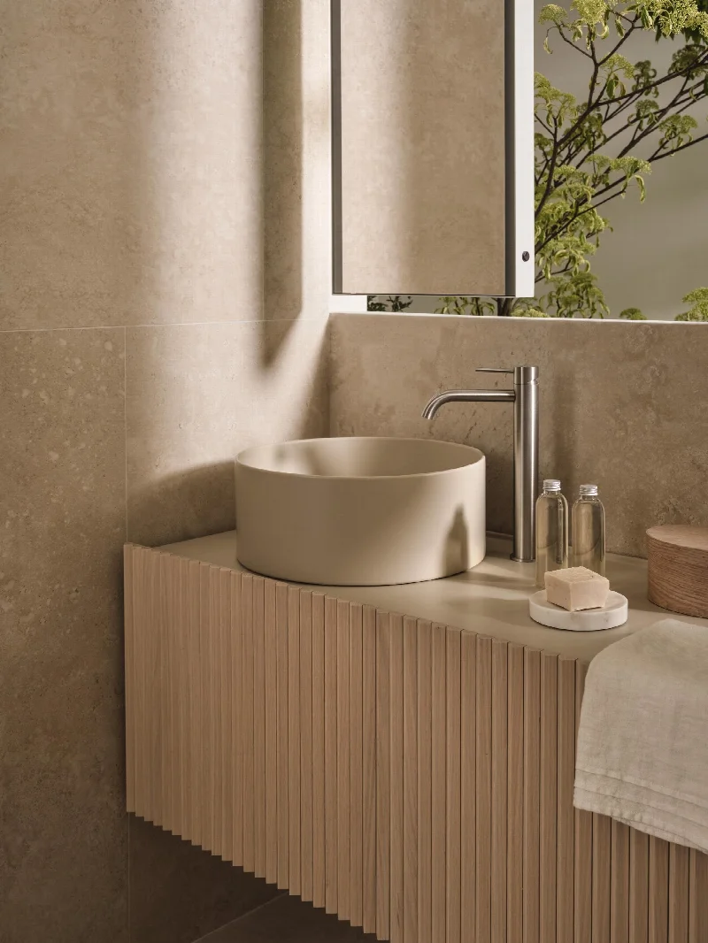 Коллекция Delfo от компании CIELO пополнилась новой интегрированной столешницей с тонким бортиком.