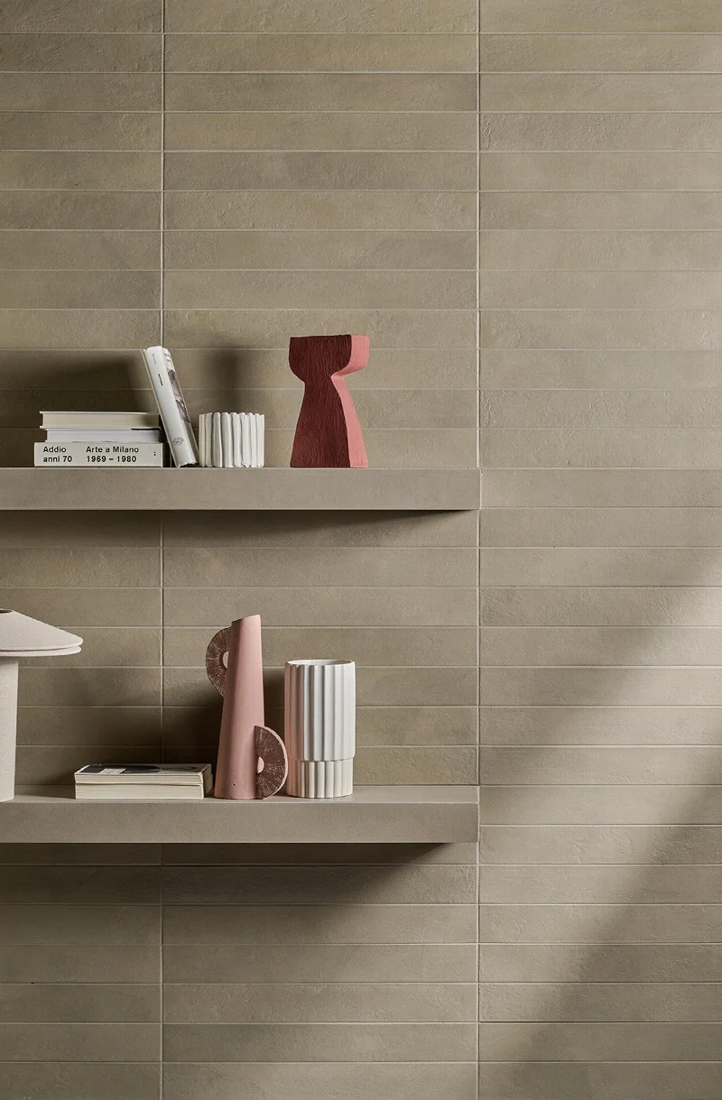 Естественные тона и неровная фактура выражают подлинность ремесленного мастерства, воспевая элегантность несовершенных деталей. Семь нейтральных оттенков, вдохновленных натуральными пастами, легко сочетаются с другими материалами — деревом и металлом.