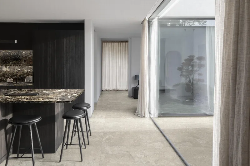 Версия в формате 60×120 см с текстурированной, нескользящей поверхностью и высокой износостойкостью обеспечивает плавный переход между внутренними и наружными пространствами. Финиш Mayenne доступен в формате 100×100 см толщиной 2 см и дополнен полным ассортиментом специальных элементов.