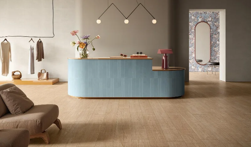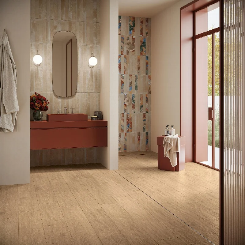 Поверхности воплощают красоту дерева, одновременно предлагая долговечность, практичность и универсальность керамики. Материал отдает дань уважения природному прообразу, который сопровождает человечество на протяжении тысячелетий.