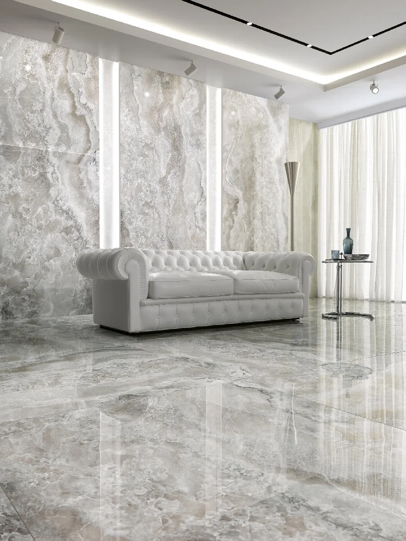 Компания Tagina представила коллекцию керамогранита Onyx Diamond, передающую роскошную сущность оникса. Инновационная технология Diamond Shard Effect добавляет в поверхность мерцающие микрокристаллы, усиливая природную выразительность материала. Взаимодействие света и тени в гармонии с прожилками камня создает трехмерную поверхность, напоминающую грани алмаза.
