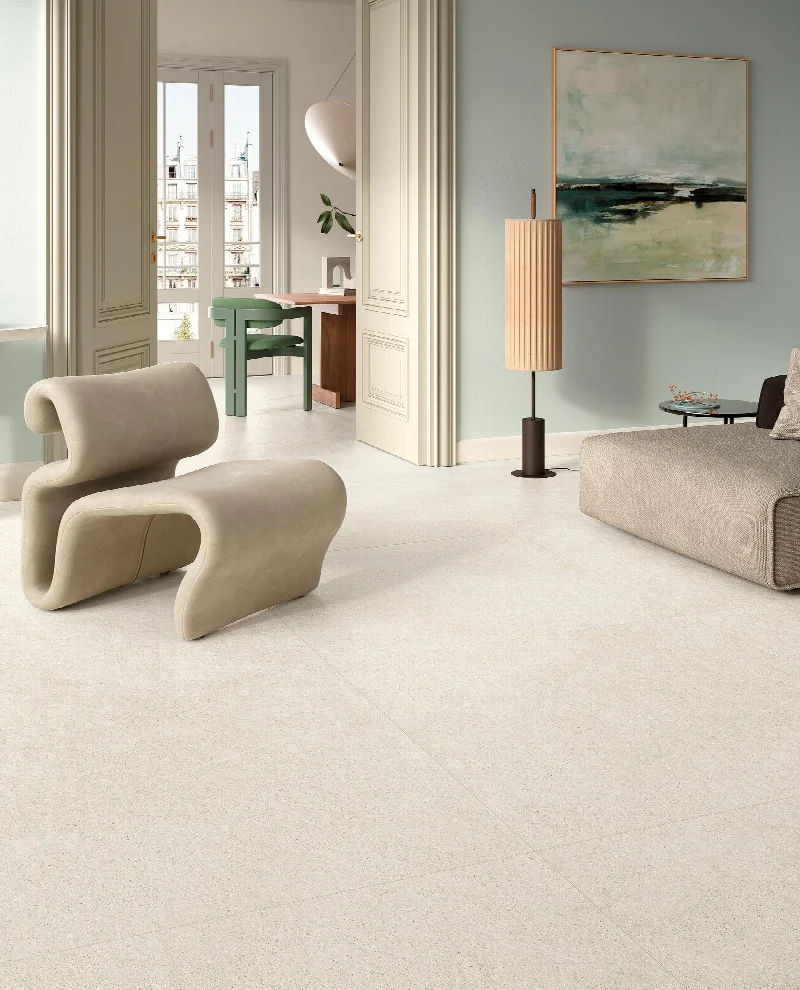 Компания DEL CONCA представила коллекцию керамогранита Sensoria, в основе которой лежит эстетика камня Bianco Siberia. Материал отличается мягкой, сдержанной текстурой, передающей визуальную глубину через богатый равномерный рисунок тон-в-тон. Поверхность оживляют редкие белые и серые прожилки, добавляющие графической выразительности и природной достоверности.
