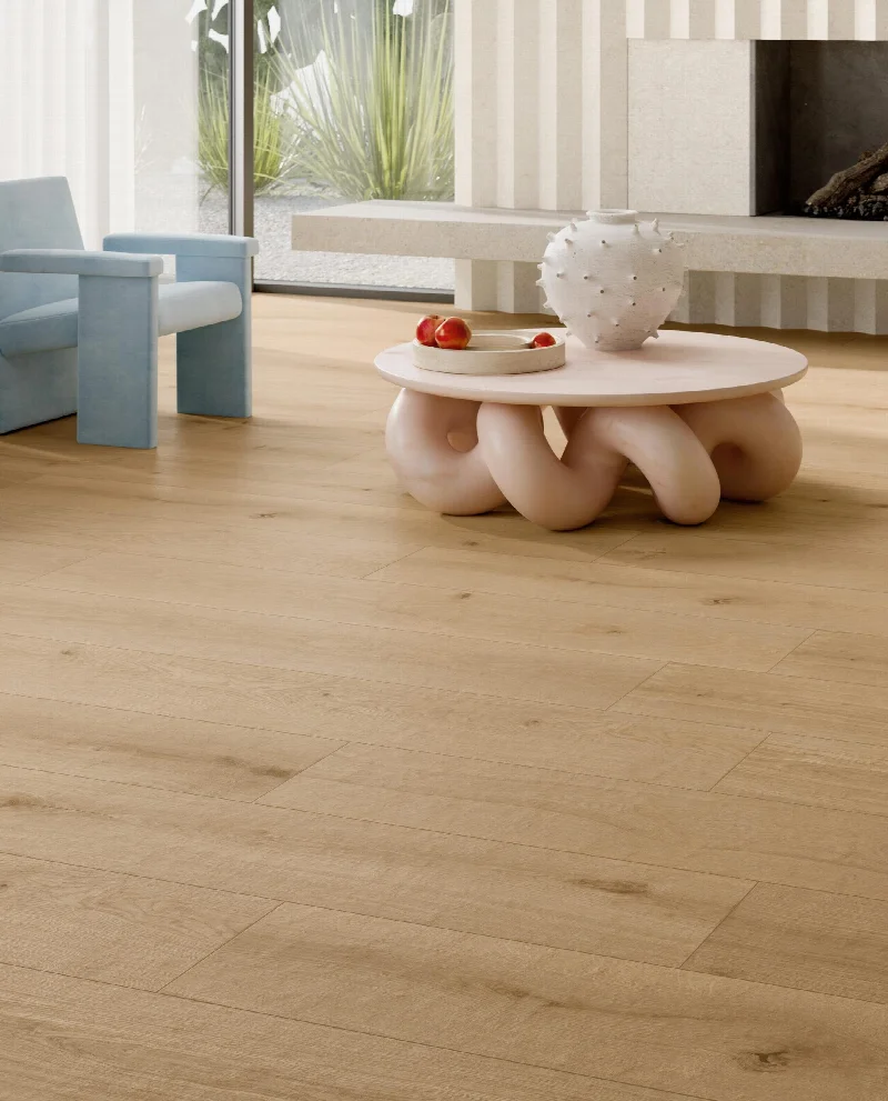 Специально разработанная поверхность с эффектом строганой доски придает материалу современное звучание и усиленное ощущение трёхмерности. Коллекция подходит для оформления полов и стен в жилых интерьерах, а также для террас и фасадов, где важна тактильная выразительность и природная эстетика в современном прочтении.