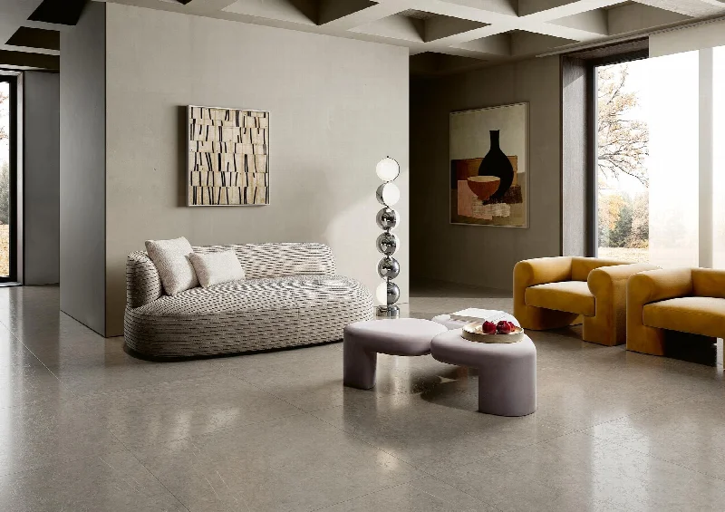 Коллекция SENSE от компании COEM превращает серый камень в керамогранит с мощной материальной глубиной.