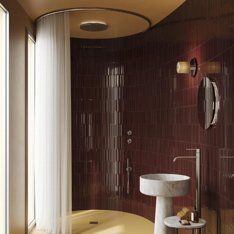 Коллекция Flautini от компании VOGUE предлагает глазурованные керамические полоски с вогнутыми, выпуклыми и плоскими профилями.