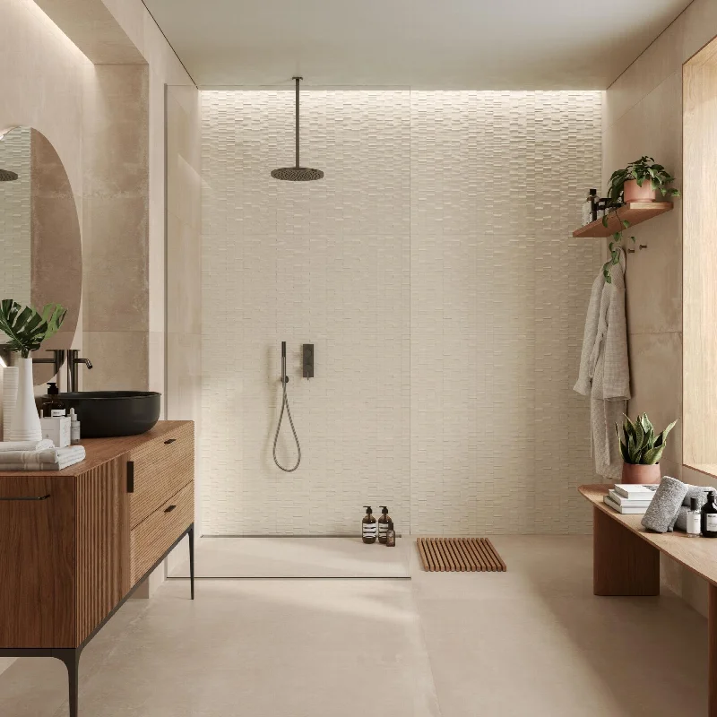 Компания IMOLACERAMICA представила коллекцию настенной плитки Forma, в которой объемная чувствительность выходит на первый план. Материал акцентирует внимание на тактильной выразительности, превращая стену в активного участника пространственной композиции. Три текстуры — Pleat, Blend и Chic — предлагают разнообразные рельефные решения, от мягких драпировок до более графичных геометрических паттернов.
