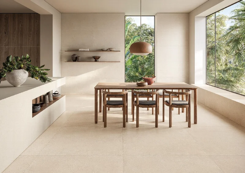 Текстура отличается тщательно выверенной гетерогенностью, обеспечивая визуальный баланс и минималистичную элегантность. Слегка трехмерная тактильная структура точно воспроизводит характер натурального камня, добавляя поверхности глубину и аутентичность. Каждый фрагмент несет память о своей природной истории, но в новом материале они обретают целостность и гармонию.