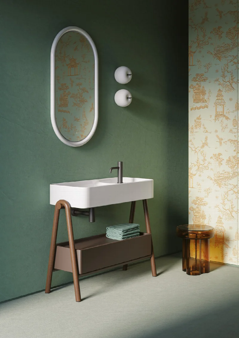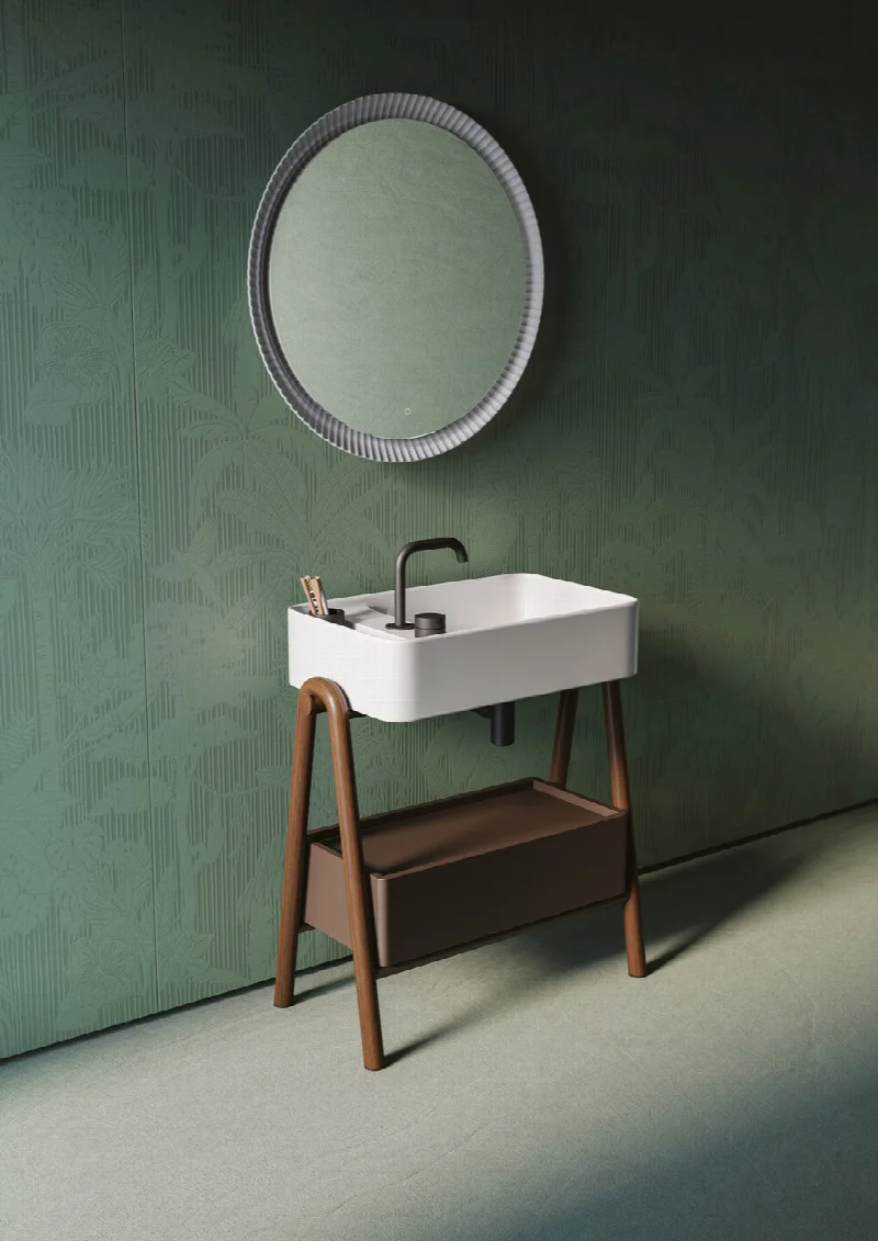 Решение сочетает эстетику и практичность в идеальной гармонии. Коллекция подходит для оформления современных ванных комнат, где ценятся нестандартный подход, продуманная эргономика и способность сантехнического объекта становиться одновременно функциональным элементом и архитектурной деталью.