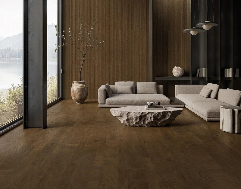 Производитель отобрал лучшие породы древесины — бук, ясень, дуб и ель — чтобы создать коллекцию, прославляющую вневременную элегантность этого материала. Поверхность воспроизводит характерный рисунок годовых колец с высокой графической точностью, сохраняя при этом тактильную глубину и природную теплоту.