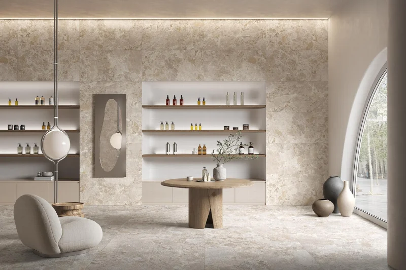 Материал предлагает современную интерпретацию камня, где текстура и индивидуальность встречаются. Выразительный рисунок и тактильная глубина делают поверхность активным участником пространственной композиции, сохраняя при этом стилистическую целостность и универсальность.