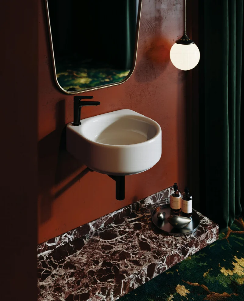Декоративный элемент, который был главной особенностью в Brera, здесь становится более тонким, почти шепотом, но остается столь же выразительным. Материал сочетает смелость и элегантность, превращая раковину из простого функционального элемента в иконичный объект, способный добавить характер и стиль любой ванной комнате.