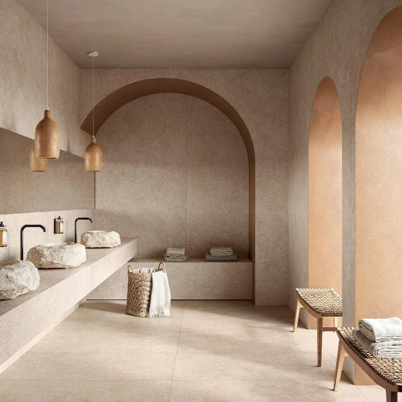 Компания Flaviker представила коллекцию керамогранита MIDI, вдохновленную стилем вилл на юге Франции. Материал сочетает изысканную аутентичность природных текстур и современный дизайн. Шесть теплых натуральных оттенков, вдохновленных льном, песком и землей, представлены в двух версиях: Nature — с однородным, но богатым деталями рисунком на слегка текстурированной поверхности, и Melange — с более разнообразным каменным эффектом и тонкой микро-бучардированной отделкой.
