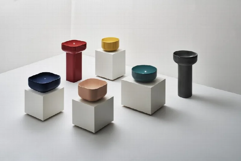 Шесть новых глянцевых цветов — Caramello, Capri, Menta, Narciso, Rubino, Grafite — добавляются к существующим матовым оттенкам, расширяя палитру до 19 цветовых решений. Разнообразие форм и широкая цветовая гамма позволяют адаптировать раковины под любые стилистические задачи — от сдержанной классики до ярких современных акцентов.