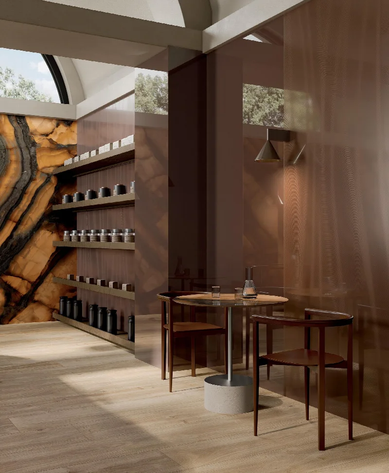 Коллекция Reflex от компании FONDOVALLE создает в интерьере глубокие переливающиеся отражения, напоминающие старинное зеркало.