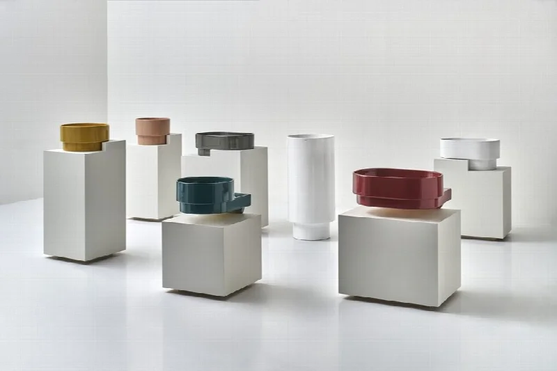 Компания SIMAS выпустила коллекцию PO•MO, разработанную дизайнером Терри Пекорой. Отличительная особенность серии — «ступенька» в нижней части изделия, придающая раковинам узнаваемый архитектурный силуэт. Две формы — круглая и овальная — представлены в нескольких размерах и высотах. Круглые модели: Ø37×19 см и Ø33×24 см; овальные: 56×37×19 см и 50×33×24 см.