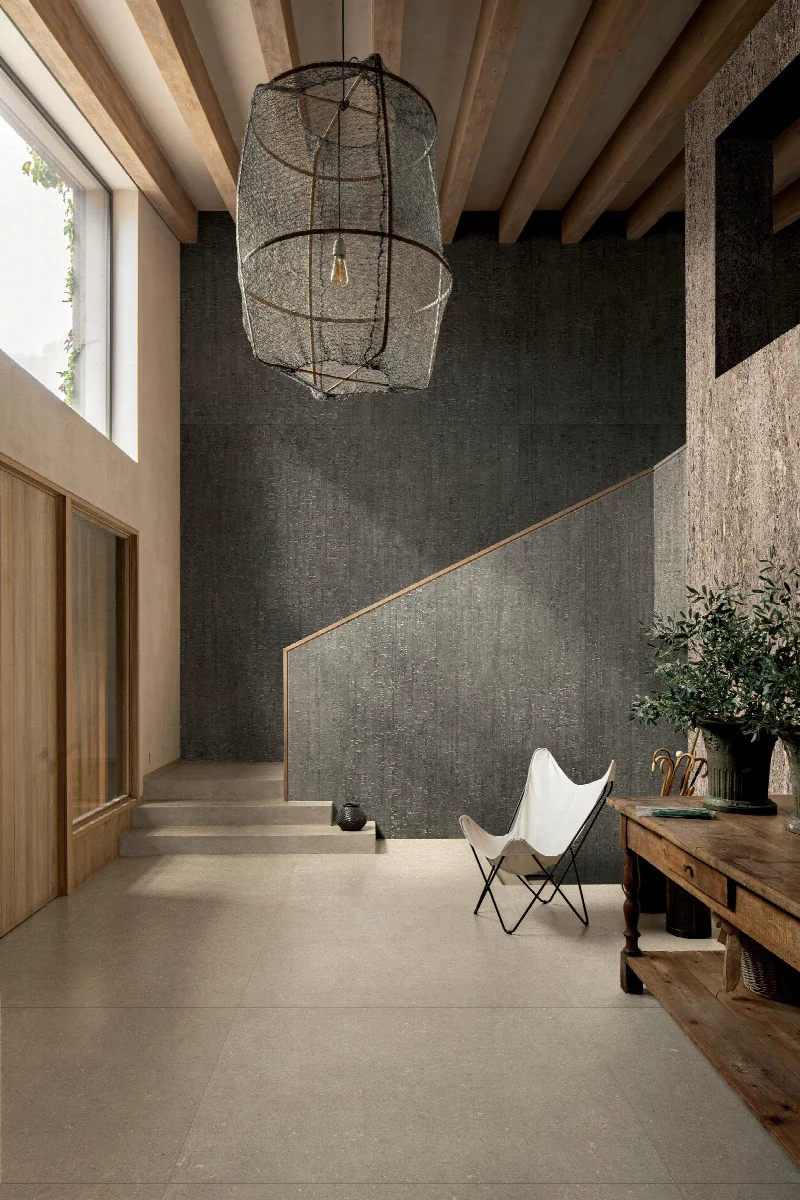 Первоначальная цель заключалась в исследовании поверхности как культурного языка. Для этого глубоко изучаются корни истории итальянской архитектуры, а ее знаковые элементы переосмысливаются с современной и лаконичной точки зрения: от песчаника до металлических плетений, от ломбардского камня, интерпретированного в теплых тонах как отсылка к средневековым башням Сиены, до уникальной фактуры пробки. Каждая текстура несет в себе память места и времени.