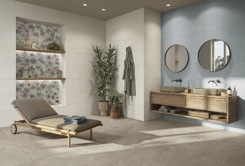 Цветовую концепцию дополняет сдержанный современный декоративный репертуар. Тонкие полосы в тоне поверхности Linear, рукотворные акварельные и флористические штрихи Floré, мягко ритмичные геометрии Rubik и нежные рельефы, оживляющие нейтральные фоны Vibra, предоставляют дизайнерам широкий спектр инструментов для создания выразительных, но гармоничных интерьеров.