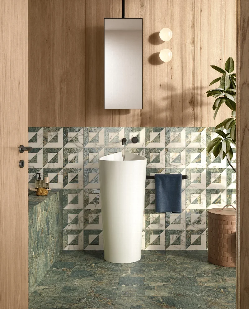 Коллекция Dimore от компании DEL CONCA переиздает пять видов ценного мрамора с использованием глубоких глазурей.