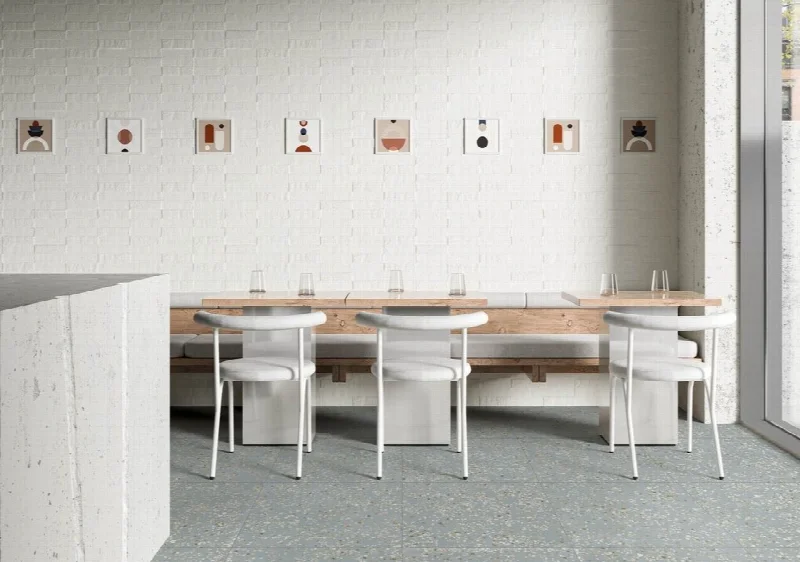 Коллекция поддерживает тренд на аутентичную связь с природой и рукотворную эстетику, предлагая практичное решение для современных интерьеров. Материал подходит для оформления гостиных, прихожих, кухонь и коммерческих пространств, где терраццо добавляет характер и индивидуальность.