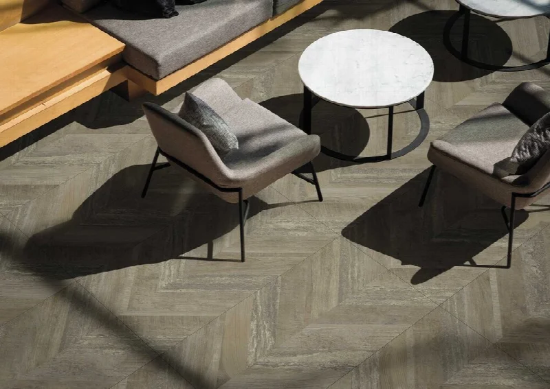 Компания APARICI представила коллекцию Chevron, в которой традиционная укладка «елочкой» обретает новое звучание. Материал передает благородство французского дуба, воссоздавая теплоту и аутентичность состаренной древесины. Матовые финиши в оттенках дуба и ореха предлагают изысканное решение для интерьеров с природным акцентом. Размер элемента составляет 49,75×99,55 см. Версия Stamp сочетает текстуры дерева и травертина, расширяя декоративные возможности.