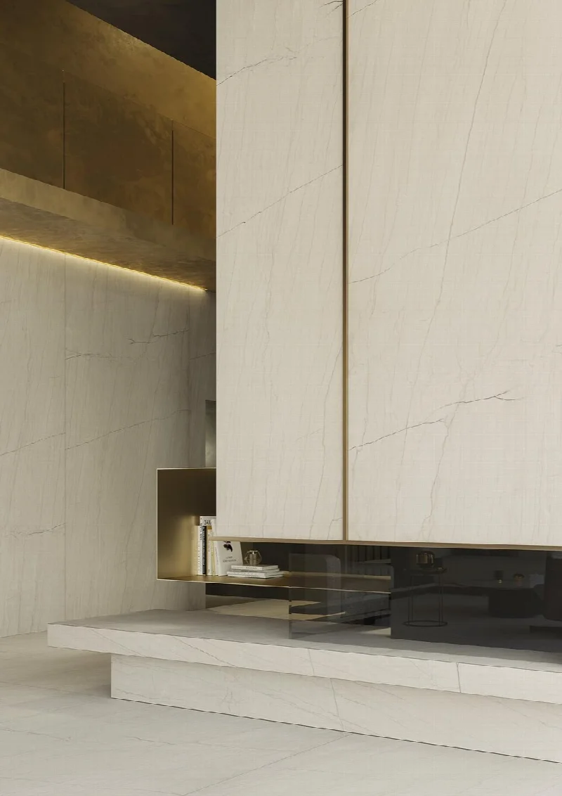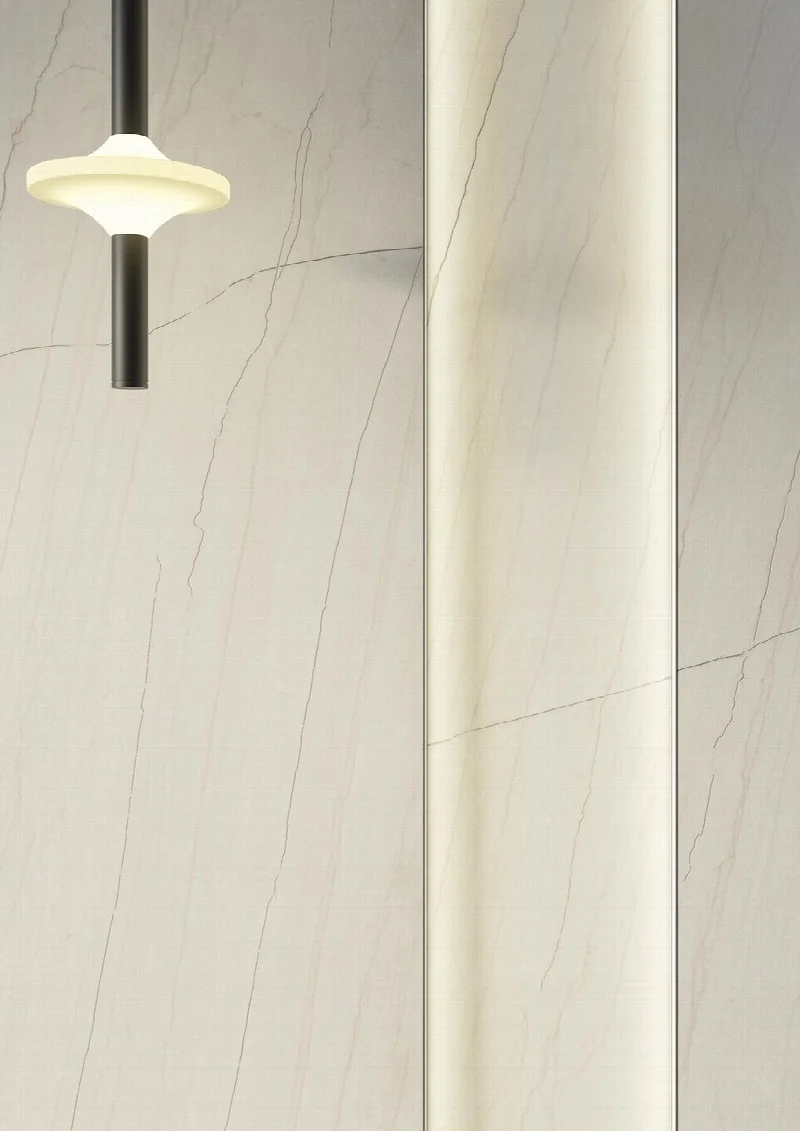 Простой, но утонченный материал выходит за рамки обыденного благодаря инновационной технологии, которая наносит прожилки на поверхность, мастерски имитируя ручную обработку камня. Игра света на текстуре и рисунке создает визуальную глубину, сохраняя при этом сдержанную элегантность.