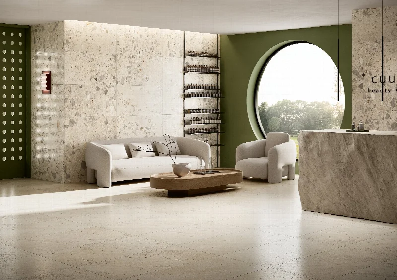 Решение демонстрирует возможности современного производства в воссоздании сложных геологических структур. Коллекция подходит для проектов, где важны аутентичность натурального камня, визуальная глубина и сочетание разных текстур в едином пространстве.