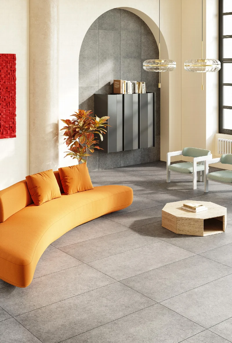 Дизайн плитки основан на рельефной структуре, которая создает трехмерный визуальный эффект и динамичную игру света и тени в течение дня. Поверхность сохраняет лаконичную и гармоничную выразительность, объединяя технологические инновации с природными мотивами.