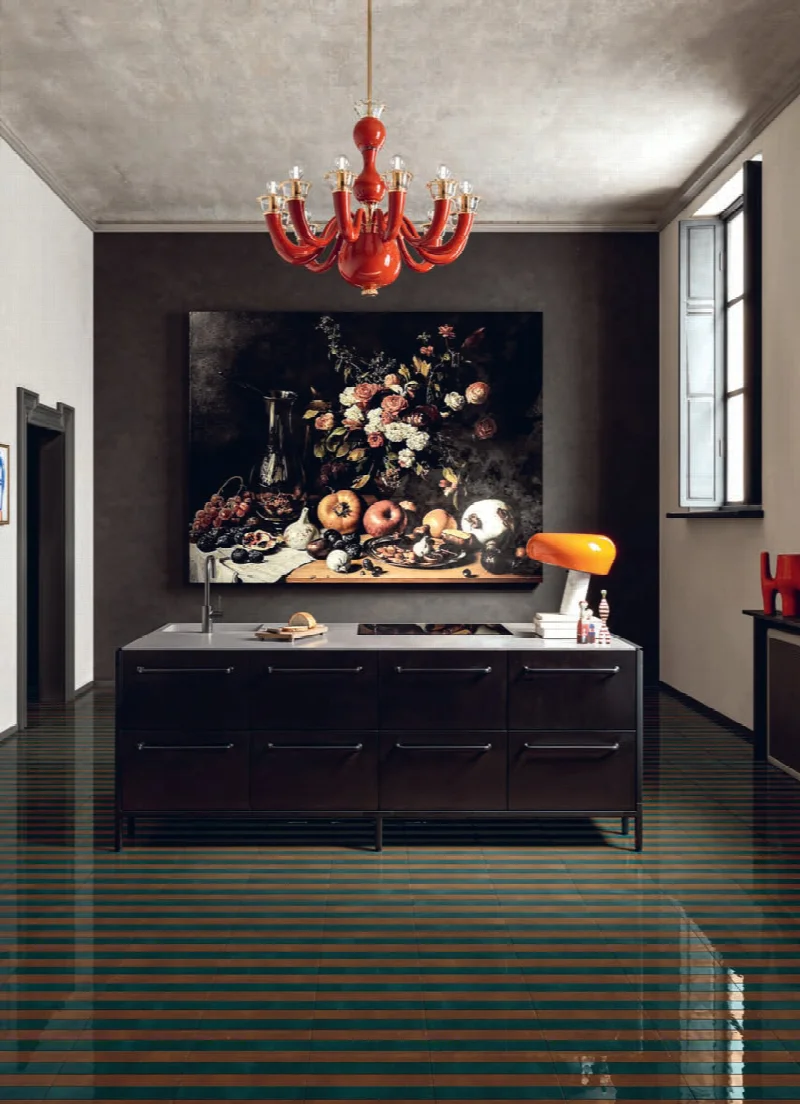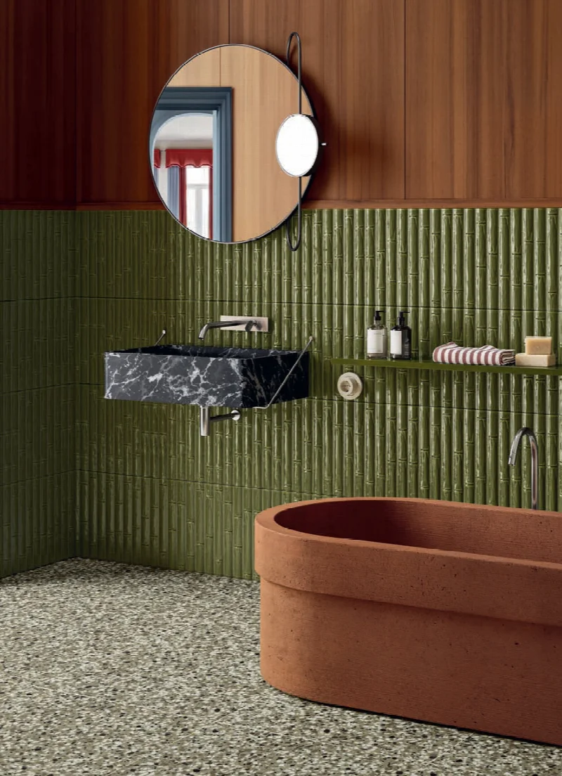 Компания 41ZERO42 в коллекции Milano70 обращается к этому наследию через возрождение традиционных производственных методов. Особенностью становится использование технологии двойного обжига фарфора с реактивной глазурью, которая наносится не цифровым способом, а вручную, что обеспечивает уникальность каждого изделия. Визуальный язык коллекции дополнен декоративными элементами из бамбука, отсылающими к эклектичным экспериментам той эпохи.