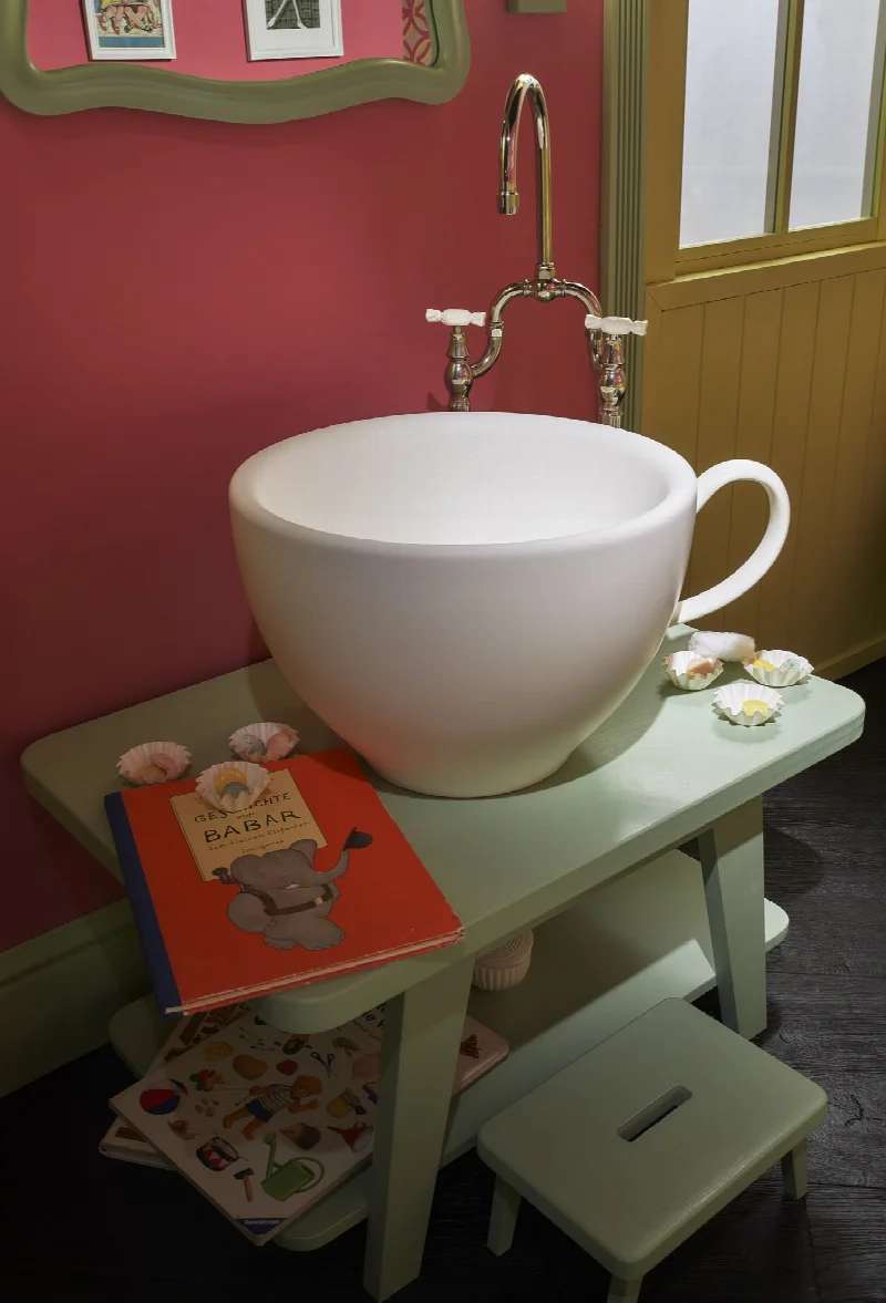 Каждая деталь коллекции ориентирована на потребности детей: от безопасных закругленных форм до специально разработанных декоративных элементов, создающих игровую среду. Производитель уделил особое внимание изучению детского восприятия цвета и формы, чтобы превратить обычные гигиенические процедуры в увлекательный процесс.