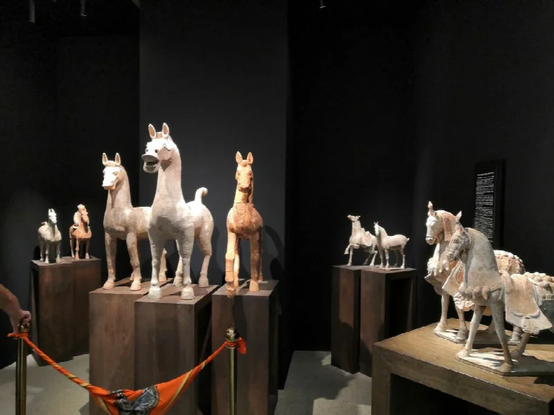 Среди представленных на выставке керамических экспонатов уместно отметить экспозицию "2000 лет истории лошади в Древнем Китае", в которой представлены лошадки из знаменитой Терракотовой армии, а также великолепную вазу, где "золотой", обвивающий ее дракон, выполнен тоже из керамики.