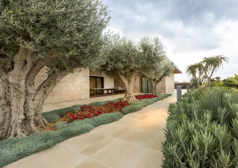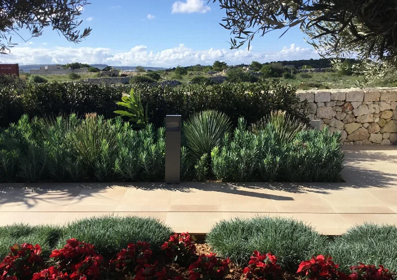 Первым символическим жестом стало разрушение барьеров. Высокие глухие стены, окружавшие виллу, уступили место невысоким, традиционным для Мальты каменным оградам. Этот прием мгновенно стер визуальную преграду между интерьером и пейзажем. На освобожденной земле начал формироваться романтический средиземноморский сад с оливами, рожковыми деревьями и характерным кустарником.