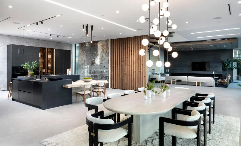 Stradella Residence стала примером того, как философия органической архитектуры обретает новое звучание благодаря современным материалам. Итальянская керамика с ее разнообразием текстур и оттенков позволила создать пространство, где природная эстетика сочетается с безупречным качеством отделки. Дом не просто вписался в ландшафт калифорнийских холмов — он стал его естественным продолжением.