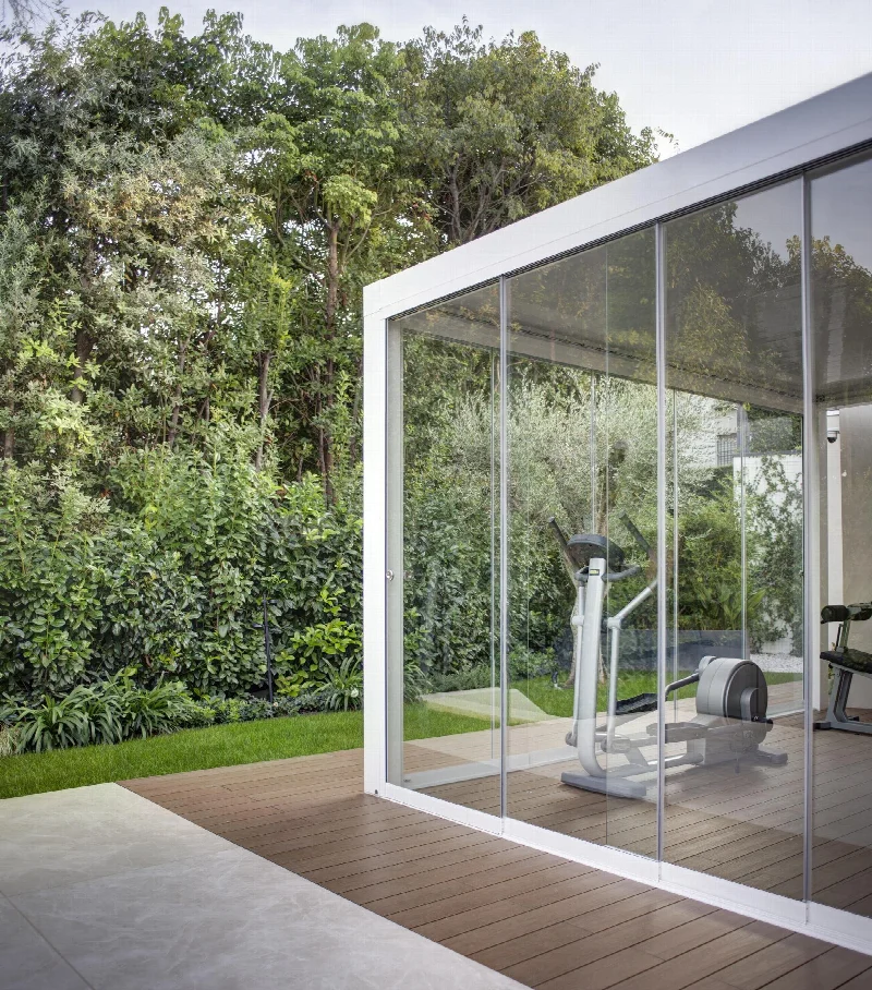 Подобно белому бумерангу, застывшему в зелени ломбардского побережья озера Гарда, эта вилла имеет открытую вытянутую форму. Стеклянная стена проходит вдоль всего фасада, обращенного к озеру, подчеркивая осмотическую связь между экстерьером и интерьером — одну из ключевых идей архитектурного проекта. «Нашей целью было способствовать взаимодействию архитектуры и природы, отдавая должное красоте ландшафта озера Гарда, — говорит Пьеро Боффа, основатель известного бюро Boffa Petrone & Partners. — Мы стремились максимально интегрировать виллу в террасированный склон, спускающийся к озеру, используя особенности участка и морфологию холма, сохраняя при этом существующие объемы и вид. Асимметричное положение относительно трапециевидного участка позволило создать более просторную открытую зону с большим бассейном и солярием».