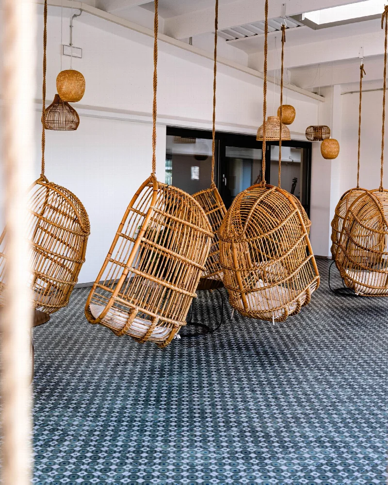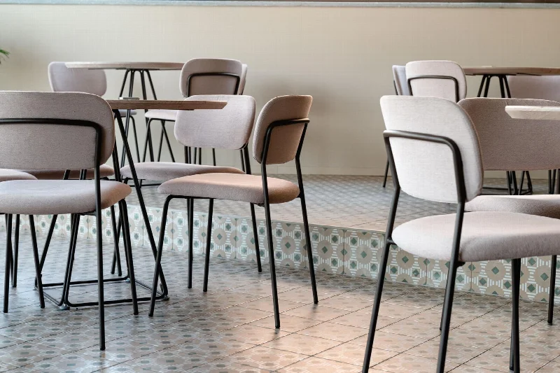 Интерьер выделяется использованием восстановленных предметов мебели и индивидуальных аксессуаров, сочетая бархат с деревом и металлом. Ландшафтный дизайн и освещение стали неотъемлемой частью трансформации. Цветовая гамма — спокойные нейтральные тона. Главную роль в отделке играет итальянская керамическая плитка ABK, выбранная в различных типах и фактурах для всех полов. Коллекция Ghost в версии Rope подчеркивает индустриальный характер первого этажа благодаря теплым пыльным оттенкам. Play Labirinth — современная интерпретация традиционных цементных плиток — выбрана для верхнего этажа в версиях Clay и Sage.
