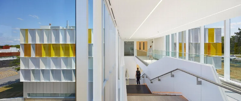 Пятьдесят лет спустя после строительства в 1973 году мрачное крыло A кампуса Sutherland колледжа Флеминга в Питерборо, недалеко от Торонто, устарело как внешне, так и функционально. Оно плохо подходило для роли главных ворот в кампус. Колледж решил провести радикальную реконструкцию, чтобы создать здание с современным обликом, соответствующее стандартам обучения и устойчивого развития XXI века.