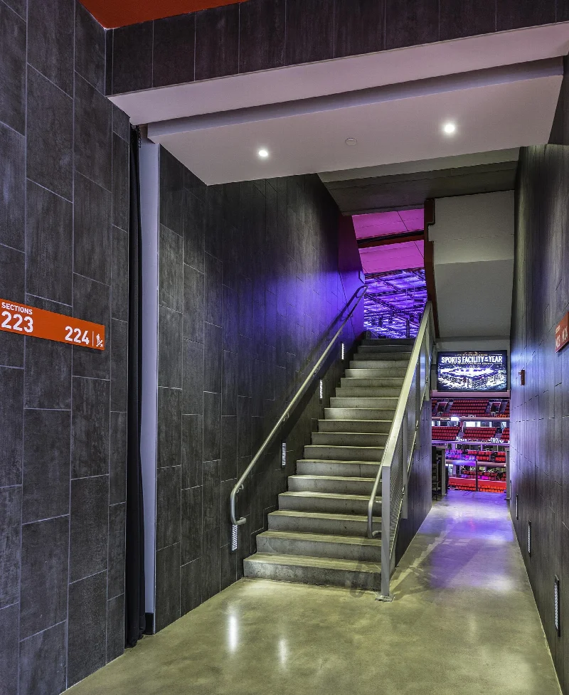 Арена Little Caesars в Детройте, спроектированная бюро Hamilton Anderson Associates, стала новым развлекательным центром города и выдающимся примером гибридной архитектуры, гармонично вписывающейся в плотную городскую среду. Это также образец устойчивого развития благодаря подходу, направленному на снижение воздействия на окружающую среду, и получила сертификат LEED. Не менее важно, что это успешный дизайнерский проект, ставший возможным благодаря тщательному выбору материалов и покрытий ведущих брендов.